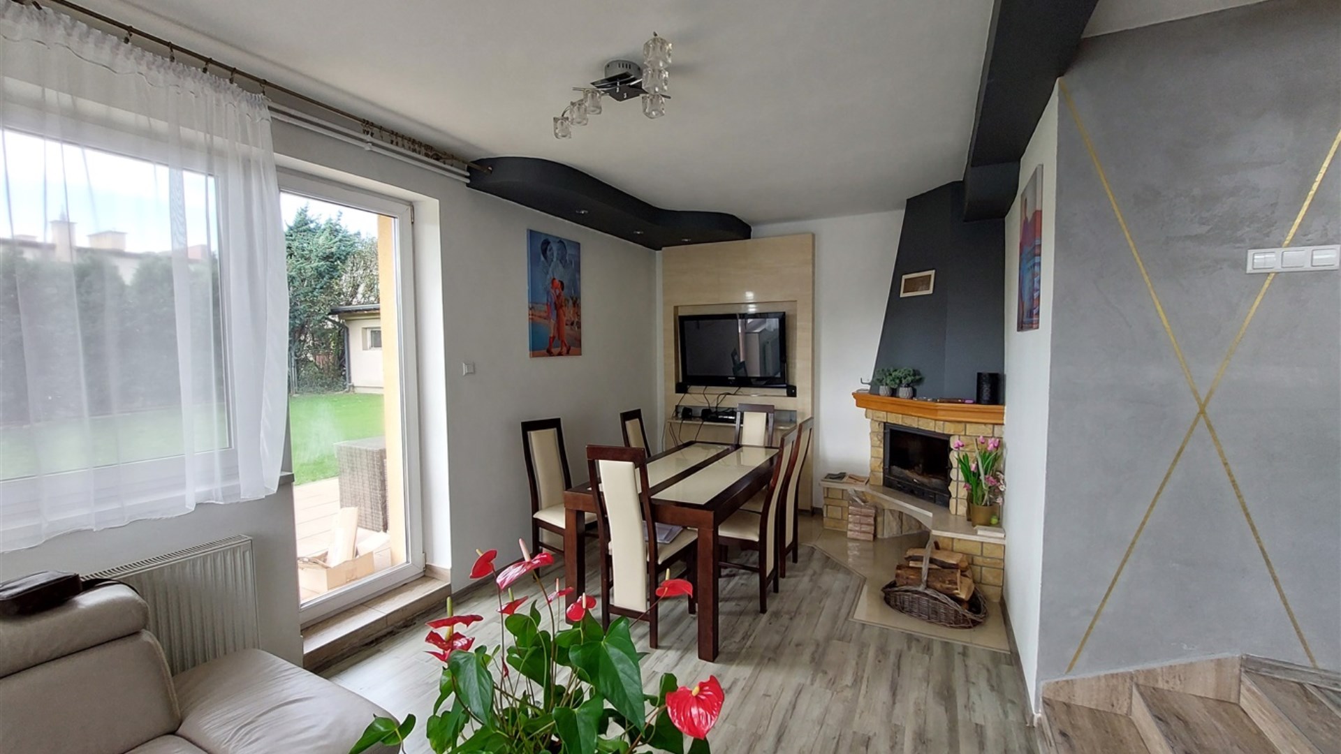 Garaż w bryle budynku, możliwość zaparkowania 3-4 samochodów przed domem.