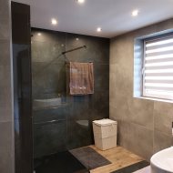 piętro: sypialnia, łazienka z prysznicem, 2 pokoje, wc.