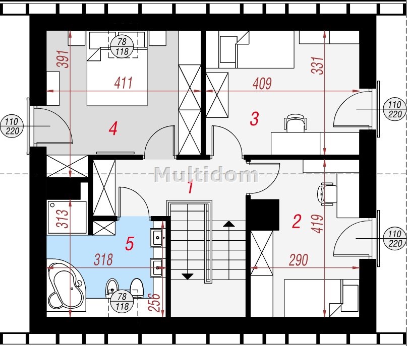 Piętro - trzy sypialnie oraz duża, komfortowa łazienka.