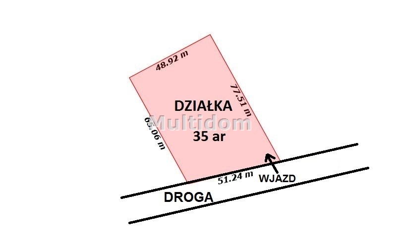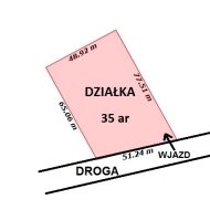 Działka o bokach długości 50x77x50x65 metrów, kształt działki w załączniku.