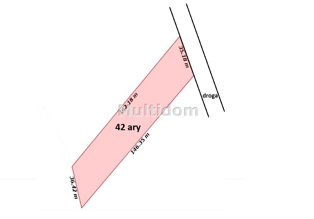 Kształt pochylony prostokąt/romb o bokach 34m x 145 m.