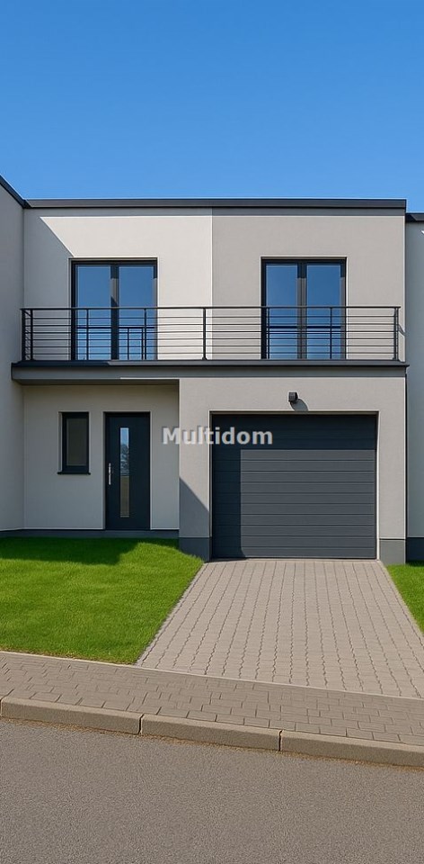 Przykładowy projekt domu szeregowego na zdjęciu.