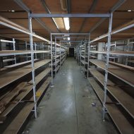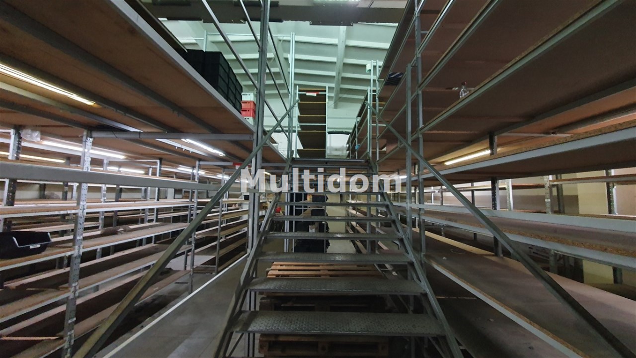 Hala cała wypełniona regałami do wysokości 4,5 metra, mogą pozostać dla klienta kupującego.