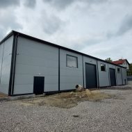 Hala w konstrukcji stalowej płyty oraz płyty PIR o wysokim współczynniku cieplny, nie ogrzewana, wentylacja mechaniczna rekuperator.