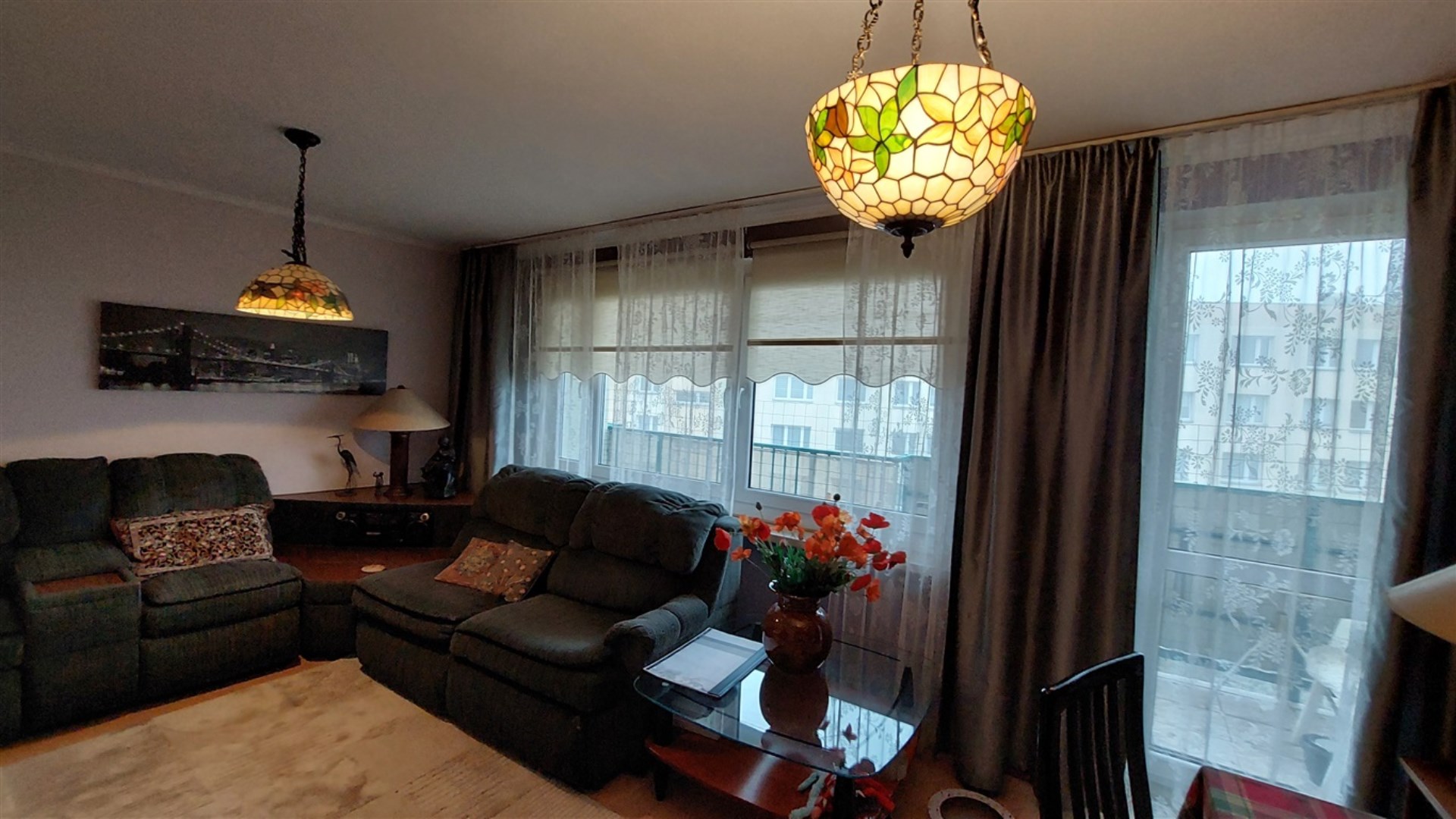 - salon/duży pokój z dużym balkonem,